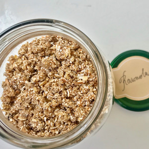 Lahko dodaš še lanena semena. Preložiš v steklen kozarec s pokrovom in hraniš v hladilniku.